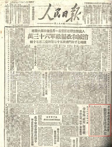 5.1949年3月1日,《人民日?qǐng)?bào)》關(guān)于北平舉行盛大歡迎會(huì)歡迎各方民主人士的報(bào)道