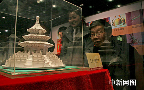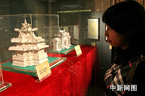 中新網(wǎng)二月二十八日電 (記者 甄雪原)“天壇祈年殿”、“故宮角樓”、“永安門城樓”、“岳陽樓”等一些中國著名建設(shè),今天再現(xiàn)于北京中華民族藝術(shù)珍品博物館內(nèi)。然后這些古代名樓的建筑材料不是磚瓦,而是普通的白卡紙。這是中華民族藝術(shù)珍品博物館今天開幕的一個(gè)“紙模珍品展覽”上的作品。其作者是北京市崇文區(qū)人大常委會主任吉?jiǎng)倬谩?table border=0 cellspacing=0 cellpadding=0 align=left>