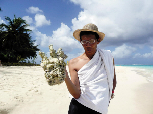 紀(jì)連海的博客圖文并茂地記錄了他這次陽(yáng)光之旅,從照片上可以看出老紀(jì)心情不錯(cuò)。在一張照片上,紀(jì)連海上身裹著白色浴巾,頭戴異域風(fēng)情的草帽,手舉珊瑚。陽(yáng)光反射在老紀(jì)1500度的眼鏡上,讓他的眼神看起來(lái)十分犀利。記者在紀(jì)連海博客留言板上看到,不少網(wǎng)友感嘆老紀(jì)身材惹火,造型比芙蓉姐姐擺得還好。