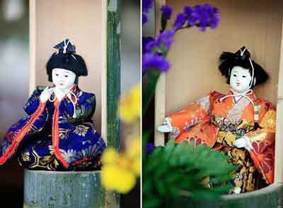 送完禮物,枝子回到家中,從自己的臥室里拿出好多偶人,擺放在偶人架上。這是她歷年珍藏的。在日本,每年過“女兒節(jié)”的時候,父母和親朋都會送一些偶人給女孩子。女孩們會將歷年得到的小偶人都珍藏起來,過節(jié)這天再把它們搬出來,和自己一起歡度節(jié)日,直到出嫁時再將它們帶走。此時,枝子的母親也將米酒、粽子、紅白綠三層菱形餅等和玩偶一起陳列在客廳里,家中節(jié)日的氣氛更濃了。中午,枝子邀來5位自己最親密的女友,我們一起圍坐在偶人架前,聽著舒緩的音樂,盡情地吃喝、說笑、玩耍。枝子的父親給我們每人發(fā)了一些小米糕,祝賀女孩們“越來越高”,健康漂亮。然后,大家在歡快的《偶人快樂》歌聲中,切開了為節(jié)日特訂的比薩餅。