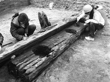 昨(3)日,在現(xiàn)場負(fù)責(zé)發(fā)掘的考古人員張擎帶領(lǐng)下,記者進入了考古現(xiàn)場,映入記者眼簾的是一些橫木和柱子。保存較為完整的一根柱礎(chǔ)底板長3.4米、寬0.45米、厚0.3米,其上有4個圓形柱洞,最高的一根立柱,高1.4米、最大直徑0.3米。這都是些什么呢?“這可是本次發(fā)掘的最大發(fā)現(xiàn),超長的豪華漢代廊橋!”張擎激動地說,“從木橋的結(jié)構(gòu)和古河道內(nèi)出土的遺物推測,這座木橋是漢代典型的建筑,結(jié)構(gòu)與2001年在金沙遺址蘭苑地點發(fā)現(xiàn)的漢代木橋完全相同,民間又叫它‘風(fēng)雨橋’!