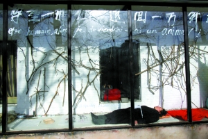 昨日下午798南門附近799藝術空間櫥窗內,藝術家郝光在此搭起了帳篷,并移居于此。這個被郝光命名為“退一萬年櫥闊天空”的行為藝術,是藝術家維權事件的進一步升級,郝光想借此表示對798物業(yè)的抗議。對此,798藝術區(qū)建設管理辦公室主任陳勇利表示,郝光與物業(yè)的糾紛屬于經(jīng)濟合同糾紛,物業(yè)方七星集團已經(jīng)起訴至法院,屆時會通過法律來裁決。