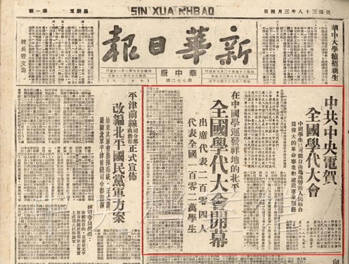 5. 1949年3月4日,《新華日報》關(guān)于全國學(xué)代大會的報道