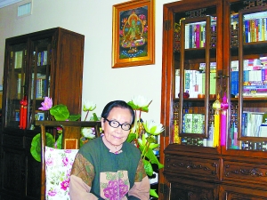 在整個采訪過程中,葉曼先生娓娓而談,時而親歷故事感人,時而詩詞典故連綴古今。當記者問到葉曼先生的養(yǎng)生秘訣時,她說,一是吃素,二是能常常為人著想,站在對方的角度想問題,原諒人就很少生氣;三是多一點好奇心,好比孩子。老想當年勇那是老年的毛病。