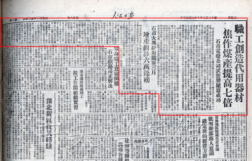3. 1949年3月30日,《人民日報》關(guān)于焦作煤產(chǎn)提高七倍及石市紗廠增產(chǎn)細紗六萬余磅的報道