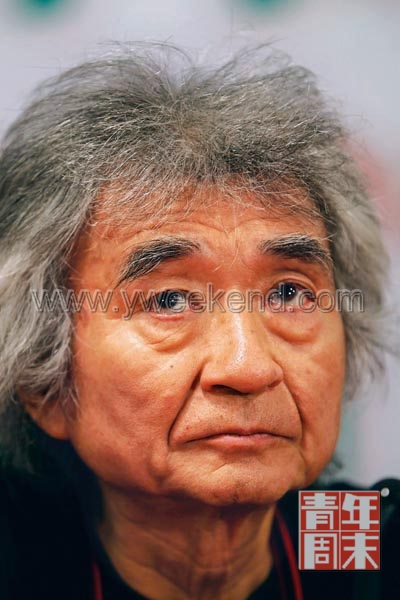 3點(diǎn)45分,小澤征爾終于出現(xiàn)了。你很難把這位傳奇音樂(lè)家與他73歲的高齡聯(lián)系起來(lái)。他有著年輕人一樣的精神面貌,目光炯炯有神,步履輕快有力,動(dòng)作靈活敏捷。入座后,記者以為他會(huì)因遲到謙遜地跟大家道歉,結(jié)果他語(yǔ)出驚人——“國(guó)家大劇院太大了,我一進(jìn)來(lái)就轉(zhuǎn)向,找了半天才找到,喲,你們不錯(cuò)啊,都能找到,真厲害!痹趫(chǎng)記者被他逗得哈哈大笑。