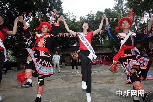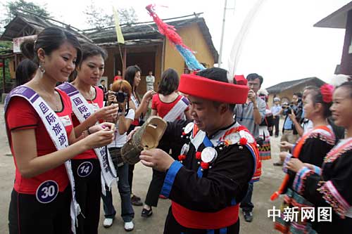 中新網(wǎng)4月26日電 (記者 應(yīng)妮)在廣東參加2009國際旅游小姐中國區(qū)總決賽的61位選手近日來到連南縣,走進嶺南地區(qū)少數(shù)民族——瑤族生活的世界里,探尋和了解瑤族人時代生活的風俗風情。