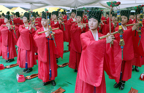 被指定為重要非物質(zhì)文化遺產(chǎn)第85號(hào)的釋奠大祭,是在孔子祭日(5月11日)和誕辰(9月28日)舉行的祭奠儀式。