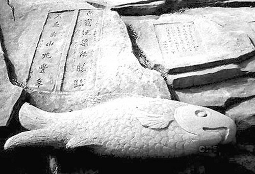 白鶴梁題刻中有一尾標注最早的枯水題刻的石魚,它的眼睛正好是長江中上游的零點水位,比1865年長江上設立的第一根水尺——武漢江漢關水尺的水位觀測記錄,要早1100多年。當?shù)赜小笆~出水兆豐年”之說,據(jù)稱如果石魚在冬天枯水期露出水面,則第二年必是豐收年!笆~出水”是當?shù)厝似谂呜S年的“吉兆”。
