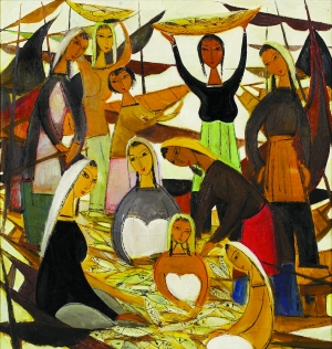 蘇富比稱此次拍賣的《京劇人物》四幅作品是挪威海勒夫婦與林相識(shí)后陸續(xù)買的。珍藏近半個(gè)世紀(jì)后,去年8月左右,海勒夫婦及其兒子聯(lián)系了蘇富比倫敦古董部,之后又轉(zhuǎn)到香港這邊。而《漁獲》藏家亦是丹麥前駐中國大使畢德森。畢德森在北京結(jié)識(shí)了林風(fēng)眠,六十年代回丹麥時(shí)帶走了一幅油畫及一幅水墨畫,這幅油畫由畢德森的女兒交給蘇富比拍賣。作品畫于五十年代后期至六十年代初期,當(dāng)時(shí)內(nèi)地鼓勵(lì)畫家要到鄉(xiāng)間去,接觸農(nóng)民,林風(fēng)眠才開始到農(nóng)村采風(fēng),因此創(chuàng)作了《漁獲》。