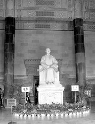 第四路段自下關(guān)中山碼頭至中央黨部、再至中山陵,采用汽車(chē)。5月28日12時(shí)10分,威勝艦抵達(dá)下關(guān)中山碼頭。靈櫬上岸,由北京杠夫抬入靈車(chē),在場(chǎng)的國(guó)民黨中央委員以及孫中山家屬,均親手扶棺奉移。那輛加長(zhǎng)的靈車(chē)是特地向美國(guó)納喜車(chē)行定做的。靈車(chē)沿新修成的迎櫬大道緩緩而行,下午3時(shí)15分抵達(dá)中央黨部,仍由北京杠夫?qū)㈧`櫬移入祭堂。