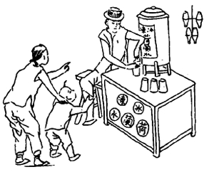 汽水!斑@可是一個新鮮的玩意兒,喝到肚子里打嗝,熱氣從口腔和鼻孔噴出來,身體就會涼快下來,所以,汽水很受歡迎。”