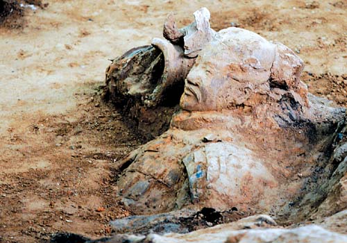 這一次,發(fā)掘過程中就將采用現(xiàn)場(chǎng)彩繪保護(hù)工藝,讓兵馬俑仍因遍身施彩而鮮活生動(dòng)。這項(xiàng)工藝是中德專家歷經(jīng)十余年探索的成果,2001年通過國家文物局成果鑒定,達(dá)國際領(lǐng)先水平。具體說,辦法之一是選用抗皺縮劑和加固劑聯(lián)合處理法,綜合利用噴涂、點(diǎn)涂、注入法等將化學(xué)物品注入,加固保護(hù),減輕彩繪對(duì)環(huán)境的敏感度,也就是邊細(xì)細(xì)清理俑體,邊及時(shí)為暴露在空氣中的彩繪穿上“保護(hù)衣”,觀眾今后會(huì)看到一個(gè)色彩斑斕的威武軍陣!