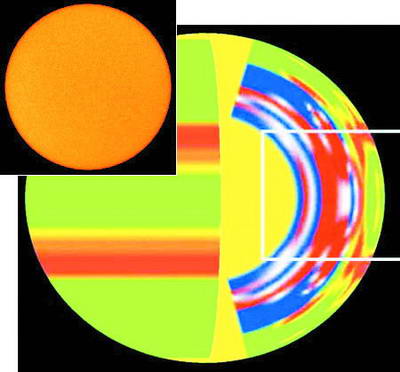 NSO科學(xué)家Frank Hill表示,這便是在太陽上發(fā)生的一切,只不過略有不同罷了。利用一種被稱為日震學(xué)的技術(shù),他和同事Rachel Howe從上世紀(jì)90年代中期開始對(duì)太陽射流進(jìn)行跟蹤研究。這種方法與地震學(xué)家用于探測(cè)和評(píng)估地震的方法類似,并且由于太陽射流發(fā)生在太陽表面下幾千公里,因此日震學(xué)的應(yīng)用便顯得尤為重要。Hill和Howe發(fā)現(xiàn),與正常情況所需的11年相比,形成于1996年的太陽射流運(yùn)動(dòng)得更為緩慢——用了13年才到達(dá)了臨界的南北緯22度。
