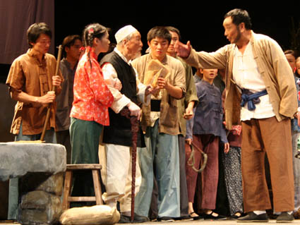 2007年4月,在中國話劇迎來百年誕辰的時(shí)候,93歲高齡的歐陽山尊同其他老一代話劇藝術(shù)家在解放軍歌劇院同臺(tái)演出了《紀(jì)念話劇百年經(jīng)典話劇片斷欣賞》。為了這場(chǎng)演出,山尊老傾注了很多心血。他親自挑選劇本,親自給演員說戲,并執(zhí)意要在舞臺(tái)上演出。排練時(shí),老人家說到高興處,激情澎湃,根本看不出是一位90多歲的老人。老人家的舉動(dòng)讓參加這次演出的年輕演員非常振奮,他們說,山尊老雖是90多歲高齡,但說起話來依舊虎虎生風(fēng),讓我們打心眼里佩服。這次演戲,我們得抖擻出百倍的精神,否則對(duì)不起老人家!