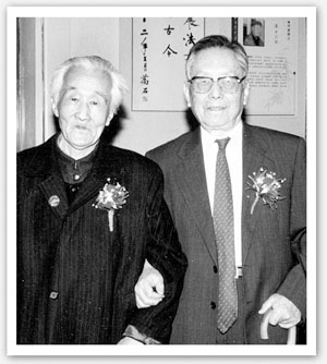 周倫玲給記者發(fā)來了兩位老人的一張獨家合影,是2002年時,兩人在中國美術館“中國學者書法展”上留下的。