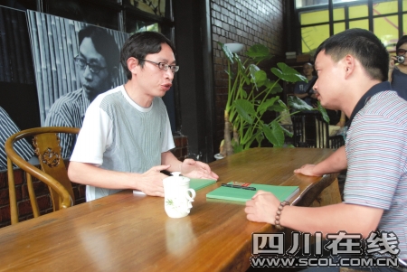 一把太師椅、一張?zhí)茨咀、一杯蓋碗茶,“廢話”開起了山寨“百家講壇”。這件名為《談?wù)劷逃返淖髌酚靡环N溫和的姿態(tài)引發(fā)了不少觀眾的議論,因為該行為藝術(shù)的作者就是飽受爭議的中學(xué)教師范跑跑。自從他受邀參加8月15日的北京798雙年展之后,范跑跑近日頻頻和藝術(shù)家“裹在一起”。當天的《談?wù)劷逃房芍^他進軍藝術(shù)界的“處女作”,說起這次自己參展的愿意,范跑跑有些不好意思,他說:“這次展覽的學(xué)術(shù)主持陳默老師非要讓我拿件作品出來,我就想到用這種方式,也算是我8月在北京展覽的一次預(yù)演吧。”當天,范跑跑就用這種方式同不少觀眾坐而論道,探討中國的教育問題,市民白先生陪自己的朋友來看展覽,無意中發(fā)現(xiàn)范跑跑搖身一變成了藝術(shù)家,大感驚奇之余,以兩個孩子父親的身份和范跑跑擺了半天育兒之道。聊完他對記者說:“范跑跑的某些觀點其實還是比較對的,比如他認為現(xiàn)在中國教育理論和實踐嚴重脫節(jié),不過這也是老生常談,而且我的確不知道他的這件行為作品算不算是藝術(shù)! 記者 楊帆 攝影 劉亮