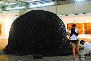 藝術(shù)家原弓將大卡車直接拉進(jìn)了展廳正中最醒目的位置,一開場就讓觀眾將視角對準(zhǔn)了汶川地震。熊貓人趙半狄也來湊了個(gè)熱鬧,展出了其2008年給災(zāi)區(qū)孩子送彩色熊貓的紀(jì)實(shí)圖片。2009年圓明園鼠兔獸事件讓傅文俊的作品對準(zhǔn)圓明園十二生肖獸首。
