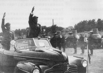 3月25日下午3時(shí),毛澤東等黨的領(lǐng)袖在西郊機(jī)場(chǎng)進(jìn)行了進(jìn)京后的第一次閱兵。