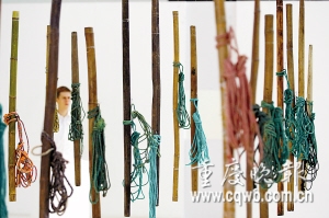 把自己當(dāng)成雕塑一動(dòng)不動(dòng)、把自己掛在鐵桿上被灑水車噴水……昨日,重慶首屆中德青年裝置藝術(shù)作品展——“現(xiàn)實(shí)中的影像”在黃桷坪當(dāng)代美術(shù)館正式開展。20多位中德青年藝術(shù)家?guī)?lái)了20件稀奇古怪的作品,其中,用每根100元收購(gòu)來(lái)的棒棒讓參觀者留下了深刻的印象。