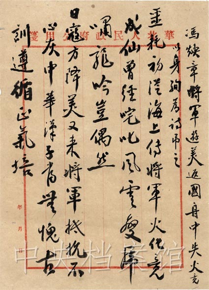 馮玉祥( 1882~ 1948)字煥章,安徽巢縣(今巢湖市)人,愛國將領。 1946年 9月赴美國考察, 1948年7月響應中國共產(chǎn)黨號召,動身回國參加新政協(xié)籌備工作, 9月 1日因回國客輪在敖德薩港附近的黑海海面失火遇難。他的遇難震驚了中外,中共中央主席毛澤東和中國人民解放軍總司令朱德向馮玉祥夫人發(fā)出唁電: “驚悉馮先生及令媛不幸遇難,至深痛悼,馮先生置身民主,功在國家。尚希勉抑哀思,并為實現(xiàn)馮先生遺志而奮斗!