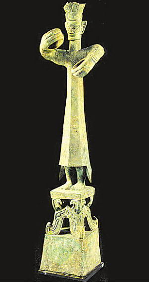 那么,“縱目”的蠶叢是什么樣子?在四川省廣漢市三星堆兩個商代大型祭祀坑中的上千件蜀國珍貴文物面世之前,歷代學(xué)者百思不得其解。三星堆出土的縱目青銅面具和青銅大立人,據(jù)考古學(xué)家論證,就是蠶叢的形象。這使得自古以來真?zhèn)文娴墓攀袷穫髡f成為信史,也為蠶叢縱目的傳說提供了實物佐證。