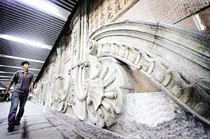 近期關(guān)于藝術(shù)品進(jìn)地鐵的話(huà)題是隨著北京地鐵4號(hào)線(xiàn)的開(kāi)通而逐漸熱起來(lái)的。于9月底通車(chē)的北京地鐵4號(hào)線(xiàn)在8個(gè)重點(diǎn)站設(shè)置了裝飾性藝術(shù)壁畫(huà),其“記憶歷史文脈,彰顯城市文化,突出地域標(biāo)志”的設(shè)計(jì)理念使這些壁畫(huà)充滿(mǎn)了人文氣息和歷史厚重感。如國(guó)家圖書(shū)館站的主題為“書(shū)的海洋”,圓明園站的西洋樓殘柱浮雕,西單站的《老字號(hào)》浮雕等?梢钥闯龅罔F經(jīng)營(yíng)方對(duì)引入公共藝術(shù)的重視,以及通過(guò)藝術(shù)品來(lái)裝飾地鐵空間,使乘客得到美的熏陶,甚至提高民眾的藝術(shù)欣賞水平的愿望。