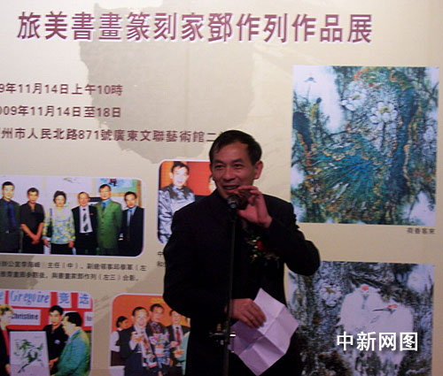 中新網(wǎng)廣州11月14日電(記者 莫非 通訊員 葉藍)旅居美國西雅圖著名書畫篆刻家鄧作列書畫藝術(shù)作品展,于2009年11月14日至18日在廣東文聯(lián)藝術(shù)館舉行,當?shù)貎S界與藝術(shù)界負責人和書畫藝術(shù)家、各界友好人士逾百人參加開幕典禮。
