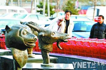 據(jù)了解,該超市于本月11日剛剛開業(yè)。超市負(fù)責(zé)人告訴記者,“十二獸首”并非超市所建,而是屬于超市所在的“城南大道”大廈。負(fù)責(zé)該大廈物業(yè)工作的京豐物業(yè)公司張經(jīng)理說,這十二個(gè)獸首是開發(fā)商在修建大廈之初就同時(shí)建造的。