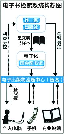 網(wǎng)絡(luò)收費(fèi)圖書檢索的構(gòu)想源自長尾真館長發(fā)表于2008年4月的一項(xiàng)個人設(shè)想,該設(shè)想最大的亮點(diǎn)便是設(shè)立非盈利的第三方機(jī)構(gòu)“電子出版物流通中心”,全面負(fù)責(zé)與作家的作品網(wǎng)絡(luò)發(fā)布有關(guān)的著作權(quán)問題。國會圖書館將藏書的電子數(shù)據(jù)無償提供給“電子出版物流通中心”,由該中心以收費(fèi)方式發(fā)送給使用者,隨后將征收到的電子書存取費(fèi)分配給著作權(quán)人。據(jù)悉,該中心的功能非常近似于眼下“日本音樂著作權(quán)協(xié)會”受詞曲作者委托,向電視臺等征收著作權(quán)使用費(fèi)。