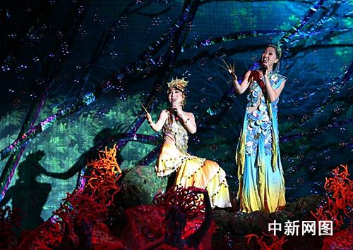 中新網(wǎng)杭州12月2日電(見習(xí)記者 趙曄嬌)今晚,大型歌舞《四季情韻》登陸杭州劇院,春季的“水鄉(xiāng)風(fēng)韻”、夏季的“沙漠風(fēng)情”、秋季的“無邊風(fēng)月”、冬季的“北國風(fēng)雪”等四季美景一一呈現(xiàn)。特別值得一提的是,在夏季篇章,一道高10米、寬20米的瀑布從天而降,一時間水花飛濺,近5分鐘的實景水幕隨著燈光發(fā)出閃爍銀光。而壓軸篇《俏江南》創(chuàng)作靈感更是來自浙江籍藝術(shù)家陳逸飛生前同名畫作。整場演出讓觀眾如親身置于神州四季風(fēng)情之中。
