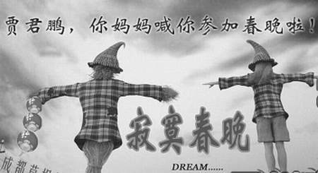 雖然離春節(jié)還有一段時(shí)間,但山寨春晚的話題再一次被提起。昨日,以拍攝草根電影、山寨奧運(yùn)、山寨克隆版《風(fēng)聲》、去年舉辦豬堅(jiān)強(qiáng)草根春晚而聞名的“成都草根劇組”再一次以樂活精神舉起了成都草根春晚的旗幟——今年,成都的草根春晚將大打網(wǎng)絡(luò)牌,將寂寞黨、賈君鵬等一系列轟動(dòng)網(wǎng)絡(luò)的熱門話題納入春晚節(jié)目中,且春晚名字就叫做“寂寞春晚”。為了辦好草根春晚,網(wǎng)友正召集綠林草根,為“寂寞春晚”尋找不甘寂寞的坊間好漢以及山寨場地。
