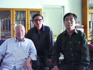 時間過得真快,不知不覺地一個小時過去了,我們不忍心讓已經(jīng)93歲高齡的老人太累,就提出告辭。王老似乎意猶未盡,繼續(xù)和我談?wù)撍完悏艏蚁壬黄鹛接懨髑寮揖叩耐。當我告訴他擬編著《陳夢家和他的朋友們》一書,并提出請他題寫書名時,王老痛快地答應(yīng)了,并讓我留下地址和電話,說寫好了就通知我來取。真的該走了,我居然忘記了王老家門上貼的提示:不要請王老合影;不要請王老題字的“約法三章”,提出與王老合影,老人愉快地答應(yīng)了。
