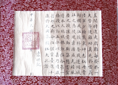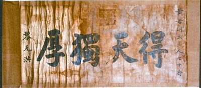1916年辛亥首義志士大黃申薌之母胡太夫人七十壽誕之際,時(shí)任民國大總統(tǒng)黎元洪為之題寫”得天獨(dú)厚“橫披,以賀其壽。據(jù)紀(jì)念館館長(zhǎng)梁華平介紹,受以往對(duì)其政治評(píng)價(jià)的影響,黎元洪手書真跡未受應(yīng)有重視,大多散失。這件“得天獨(dú)厚“橫披手跡更是彌足珍貴。 (記者 蔣太旭 通訊員 何廣 實(shí)習(xí)生 趙紅)