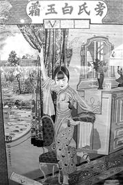轉(zhuǎn)眼來到廣告畫月份牌展位,南洋兄弟香煙、旁氏白玉霜化妝品(圖二)以及蘭閨試鞋圖等廣告,從一個側(cè)面反映了辛亥革命帶給中國的社會變遷,極具觀賞性,畫面中女性的時尚與靚麗讓章開沅不禁贊嘆:民國時期的女性很會打扮嘛!