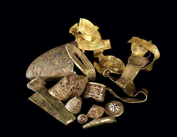 此次出土的史前文物多與戰(zhàn)爭相關(guān),如頭盔的碎片、嵌有石榴石的黃金劍柄等?脊艑W(xué)家表示,這些文物很可能是從某位國王手中繳獲的戰(zhàn)利品。史詩《貝奧武甫》就曾提及在盎格魯撒克遜時(shí)期國王與貴族之間經(jīng)常發(fā)生戰(zhàn)爭,使得不列顛群島與歐洲的其余部分相隔開來。但此次發(fā)現(xiàn)的寶藏顯示,英國并未像之前記載的那般,切斷了與其他地區(qū)間的發(fā)展脈絡(luò)。諸如黃金劍柄上的石榴石就很可能源自斯里蘭卡等地,這表示英國在當(dāng)時(shí)仍存在著某種形式的長途貿(mào)易。