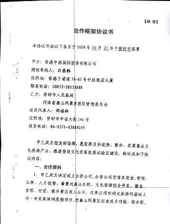 被少林寺方丈釋永信辟謠多次的“少林寺上市”或許并非空穴來(lái)風(fēng),不過(guò)這一次秘密運(yùn)作2011年“上市”的是登封市政府,連少林寺也被蒙在鼓里。香港中旅集團(tuán)與登封市簽署的《合作框架協(xié)議書(shū)》和《登封市政府常務(wù)會(huì)議紀(jì)要》顯示,雙方確定斥資一億元成立“港中旅(登封)嵩山少林文化旅游有限公司”,其中港方占51%股本控股,少林寺門票經(jīng)營(yíng)權(quán)等嵩山少林景區(qū)資產(chǎn)則被登封市作價(jià)4900萬(wàn)元作為入股的一部分。(12月16日千龍網(wǎng))