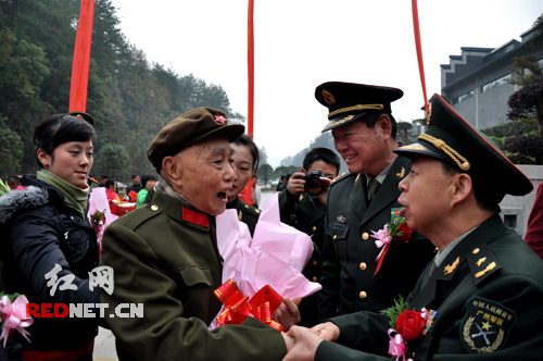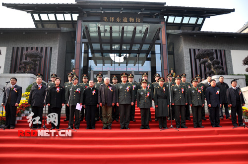 湖南省軍區(qū)司令員張永大,中共湖南省委常委、省軍區(qū)政委楊忠民,軍表捐贈者、原湖南省軍區(qū)副司令員黃明開,湖南省軍區(qū)副司令員張中湘,湖南省軍區(qū)副政委萬建華,湖南省軍區(qū)副政委魏永景,湖南省軍區(qū)參謀長李蘭田,湖南省軍區(qū)政治部主任劉新等出席開展儀式并剪彩。為大渡河十八勇士吹響沖鋒號、92歲高齡的老紅軍張生榮、抗洪英雄李向群烈士的父親李德清、肖日忠烈士的女兒肖麟也親臨現(xiàn)場為開展祝賀。