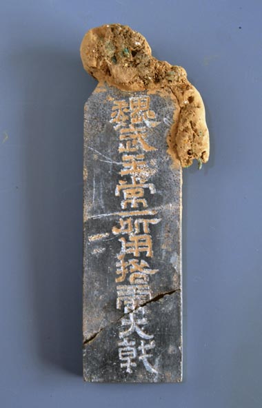 在墓室清理中,發(fā)現(xiàn)有人頭骨、肢骨等部分遺骨,專家初步鑒定為一男兩女3個(gè)個(gè)體,其中,墓主人為男性,年齡在60歲左右。