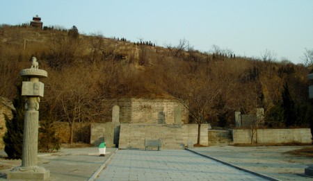 環(huán)繞四周,園內(nèi)建有子建祠、曹植墓碑、七步路、羊茂臺、洗硯池、聞梵處、梵音洞、摩崖刻字、魚姑廟、觀河亭、仙人足印、穿陽洞、浴仙池、龍山文化遺址、中日魚山友好紀(jì)念碑和歷代碑刻等古跡。魚山腳下即是滾滾黃河,隔河面對連綿群山。