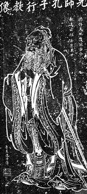 人們通?吹降摹翱鬃有薪滔瘛弊钤绯鲇谔瞥膶m廷畫家吳道子,但他似乎并沒有認(rèn)真查考資料。另一方面,受《孔叢子》偽書說的影響,以后的孔子畫像便以訛傳訛,使孔子畫像、雕像都濃眉長髯。實(shí)際上,前人也指出孔子沒有須眉,如明陳繼儒《群碎錄》、清杭世駿《訂訛類編》就說:孔子無須,今像多須,誤。