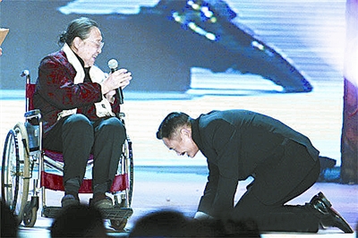 被譽(yù)為2010中國第一史詩巨片的《孔子》,1月中旬在北京舉行首映慶典,慶典上孔子的第77代嫡孫女孔德懋女士坐著輪椅上臺(tái),周潤發(fā)便一直在旁邊像子侄一樣跪著聽老太太講話。孔德懋女士盛贊周潤發(fā)在電影《孔子》中飾演孔子的精彩表演,并將寫有“永遠(yuǎn)的孔子”的橫幅贈(zèng)送給發(fā)哥。這時(shí),周潤發(fā)出人意料地向孔女士認(rèn)真雙膝跪地叩首,隨后,與孔女士溫情擁抱,場面令人動(dòng)容……