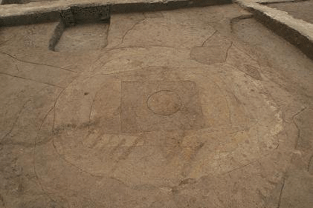 2、發(fā)現(xiàn)夯土祭壇,在山東地區(qū)尚屬首次發(fā)現(xiàn),國內罕見。祭壇位于城內南部正中偏西部位,距南墻21.5米。南北殘長34.5米,東西殘寬19米,殘存高度0.7—0.8米。中心為直徑5.5—6米的圓臺形,向外依次為不同土色的方形、長方形及圓形、橢圓形相套的夯筑臺基。外圍有多層厚5—12厘米不等的水平狀夯土堆積,間有白色沙土或灰燼薄層。祭壇邊緣多被晚期遺跡破壞,中心部位到春秋戰(zhàn)國時期仍然保存完好,其南北干道也從祭壇西側繞行,這表明,在戰(zhàn)國時期人們對祭壇仍然保持著某種程度的崇拜。