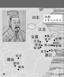通過對(duì)這一百多件族譜的全面查閱、辨別梳理,曹操后裔可能的分布遷移圖逐漸顯現(xiàn),甚至精確到縣——古曹氏主要在漢時(shí)名為沛郡的地方活動(dòng),也就是如今江蘇北部、安徽的一部分、河南到山東交界地區(qū)。從族譜的反映情況來看,此后曹家發(fā)生了很大的遷徙,方向往南走的居多,且主要是分布在長江流域,如浙江的東陽、蕭山、紹興、余姚、金華,江蘇的宜興、鎮(zhèn)江,安徽的涇縣、歙縣、績溪,湖南的郴州、益陽、長沙,甚至包括上海。