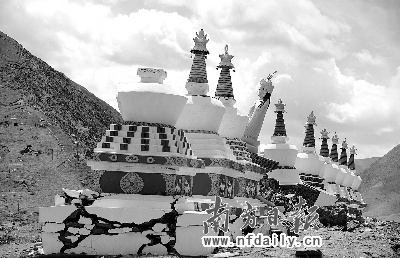 根據(jù)國家文物局16日發(fā)布的消息,青海兩處全國重點文物保護單位新寨嘉那嘛呢的佛塔、護法殿堂等附屬建筑已在地震中倒塌,省級文物保護單位禪古寺也在地震中全部倒塌,寺院僧人傷亡嚴重。據(jù)了解,此次破壞嚴重的青海玉樹州嘉那嘛呢,是我國藏區(qū)也是世界上規(guī)模最大的經(jīng)石城,它擁有多達20億塊刻著六字真言和各種經(jīng)文的嘛呢石,是一處罕見的文化勝跡,之前曾多次申報世界遺產(chǎn)。它建有佛堂及佛塔、大經(jīng)輪堂等建筑,在此次地震中受損較為嚴重。