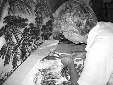 “看著簡(jiǎn)單,烙起來(lái)難!蹦详(yáng)市烙畫(huà)廠廠長(zhǎng)李哲說(shuō),烙畫(huà)亦稱(chēng)烙花、燙畫(huà)、火筆畫(huà),是以溫度在300攝氏度至800攝氏度的烙鐵代筆,利用炭化原理,不施任何顏料,在竹木、宣紙、絲絹等材料上取其相應(yīng)溫度進(jìn)行勾、擦、點(diǎn)、烘,巧妙自然地把繪畫(huà)藝術(shù)的表現(xiàn)技法與烙畫(huà)藝術(shù)融為一體,形成自己獨(dú)特的藝術(shù)風(fēng)格。用這種方法創(chuàng)作出的書(shū)畫(huà)作品為茶褐色,古樸典雅,精美絕倫。