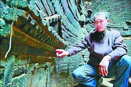 該座宋墓位于南水北調(diào)焦作段普濟(jì)路一處工地上。記者昨日到達(dá)現(xiàn)場(chǎng)時(shí),南水北調(diào)焦作段施工人員正在幫助文物工作人員保護(hù)發(fā)掘現(xiàn)場(chǎng)。據(jù)焦作市文物工作隊(duì)古建專家趙德才介紹,圓形宋墓在焦作市所發(fā)掘的宋墓中比較罕見,這座宋墓上所雕刻的建筑結(jié)構(gòu)清晰可見,對(duì)研究宋代建筑有一定價(jià)值。