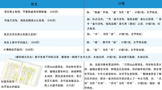 王德怡稱,目前所發(fā)現(xiàn)的閻校本《康熙順天府志》中出現(xiàn)的錯(cuò)誤,集中出現(xiàn)在第七、八卷。清人張吉午《康熙順天府志》原有八卷,現(xiàn)存七卷。從第六卷開始,內(nèi)容開始變得復(fù)雜,處理起來難度也增加了許多。閻校本出現(xiàn)的錯(cuò)誤大致分為三類:一是錯(cuò)別字;二是標(biāo)點(diǎn)符號(hào)錯(cuò)誤;三是注釋錯(cuò)誤。