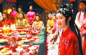 曾備受質(zhì)疑的“銅錢頭”,在融于劇中場景再看時,黛玉、寶釵以這樣發(fā)型出現(xiàn),并不十分別扭。不過,賈母、王夫人、薛姨媽這樣的中老年婦女也頂著一頭銅錢還是讓人感覺不太好,少了貴族婦女應(yīng)有的雍容華貴之氣。