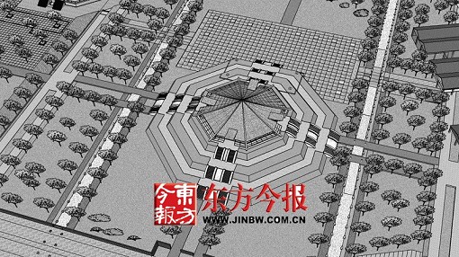 郭黛姮說(shuō):明堂建筑為一層建筑,根據(jù)遺址現(xiàn)場(chǎng)的考古報(bào)告顯示,明堂是中心柱和八邊形建筑。此次設(shè)計(jì)中,明堂將仍采用八角攢尖屋頂。